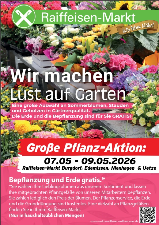 Ehrlichkeit und Regionalität sind für uns mehr als nur Worte – sie prägen jeden unserer Raiffeisen-Märkte in Osthannover. Wir stehen für persönliche Beratung, faire Preise und Produkte, die zu dir und deinem Alltag passen. Schau gern vorbei – wir freuen uns auf dich!